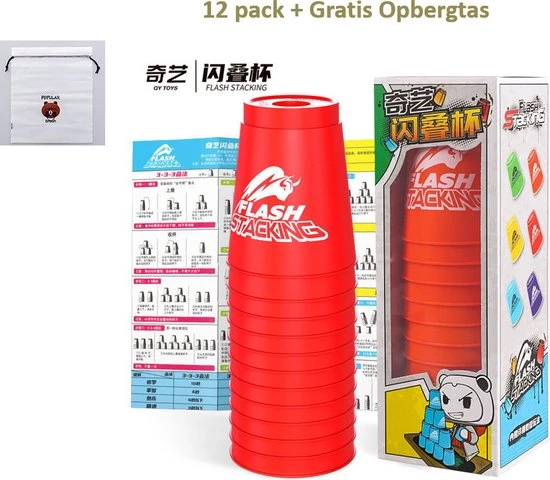 12 Pack QIYI Kinder Sportstapelen Bekers-Quick Stacks Cups – Speed Training Game Uitdaging- Competitie Party Speelgoed + Gratis OpbergTas-7.6*9.3cm -Rood