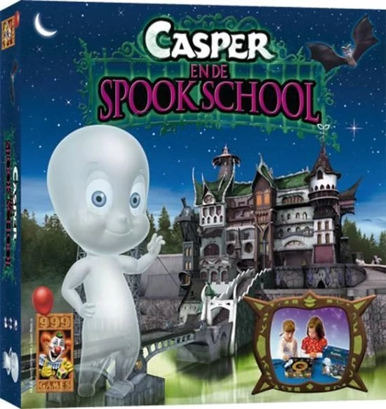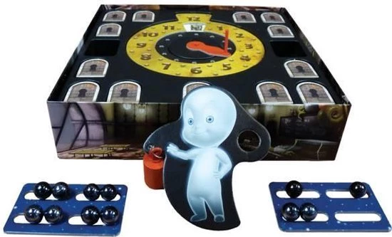 Fantastisch spel voor kinderen vanaf 5 jaar. De verpakking stelt de spookschool voor, waarin alle plekjes liggen waar Casper tijdens het spookuur graag naartoe wil. De spelers proberen goed te onthouden waar die plekjes liggen, want hoe meer ze er weten, hoe meer knikkers ze krijgen. En daarmee mogen ze weer een spannend rolspel in de deksel van de doos spelen! Het openen van de deuren is op zichzelf al een heel spektakel. Casper is namelijk magnetisch gemaakt en door hem boven een deur te bewegen, gaat deze als vanzelf open. Het spel bevordert dus zowel het geheugen als de fijne motoriek. Het grappige spelmechanisme zorgt ervoor dat ook ouders en grootouders met veel plezier meedoen.