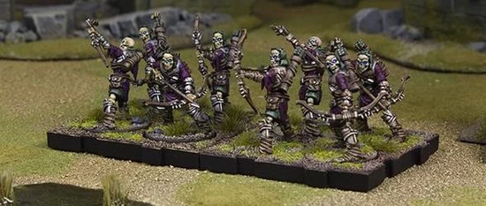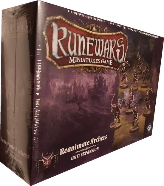 Fire poisoned arrows down on your enemies with the eight new Reanimate Archer figures included in the Reanimate Archers Unit Expansion! These eight figures give you the option to field another two-tray unit or increase the size of a larger unit?perhaps fielding a block of archers that will rain death on your foes. Like the Oathsworn Cavalry, these figures are identical to the figures included in the Runewars Core Set, and this expansion gives you an easy way to raise more undead to fight for Waiqar the Undying, while opening dark new paths with five new upgrade cards.