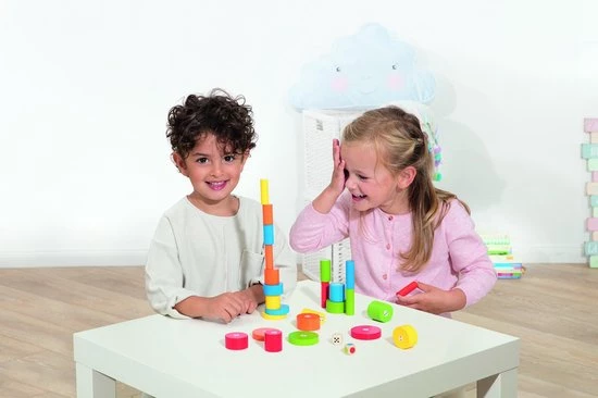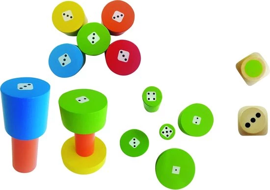 Met dit superleuke bouwspel kunnen de hoogste torens worden gebouwd! De kinderen gooien met ??n van de dobbelstenen om zo te bepalen welke bouwstenen ze mogen gebruiken voor hun toren. Wie weet op een behendige manier de hoogste toren te bouwen?