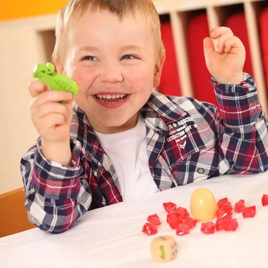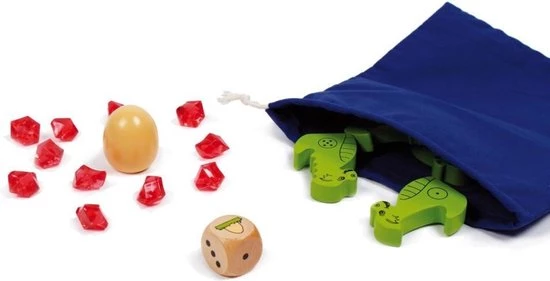 Materiaal: Hout Geschikt voor kinderen van 4 jaar en ouder Aantal spelers: 2-4 Inclusief 5 draken, 1 draken-ei, 20 vuurstenen, 1 getallen en symbolen dobbelsteen, 1 zak Helpt met de ontwikkeling van de volgende vaardigheden: Fijne motorische vaardigheden Sorteren/tellen/rekenen/groeperen De vaardigheid om in een team te werken Sociale vaardigheden Geluidsherkenning Communicatieve vaardigheden