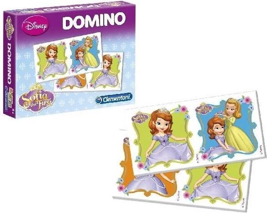 Het domino spel van Sofia the First. Inhoud: 28 dominokaarten.