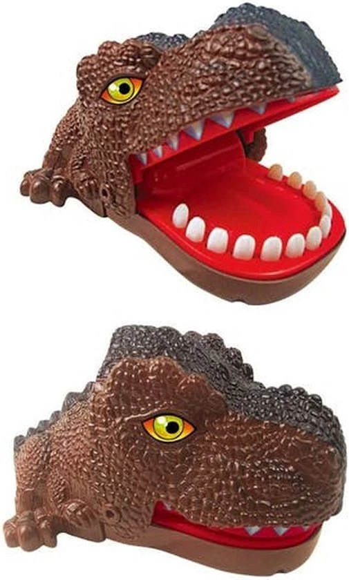 Auw! Deze zielige dino heeft kiespijn! Help jij hem van de pijn af? Bij dit spannende dinospel is het de bedoeling dat elke speler per beurt 1 van de tanden indrukt. Is dit gelukt zonder dat de dino in je vingers bijt? Dan is de volgende speler aan de beurt. Ga net zolang door totdat je de pijnlijke tand hebt gevonden. Het dino speelgoed klapt dan automatisch dicht, en de speler die ertussen zit heeft verloren. De verliezer moet een rondje om de tafel dansen, op zijn kop gaan staan of een andere gekke opdracht doen.