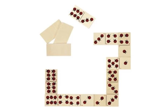 Leuke domino set met 28 houten blokjes in een opbergdoosje.