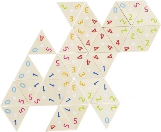 Probeer als eerste alle stenen weg te leggen en win het spel. De stenen hebben de vorm van een driehoek en hebben leuke gekleurde cijfers.