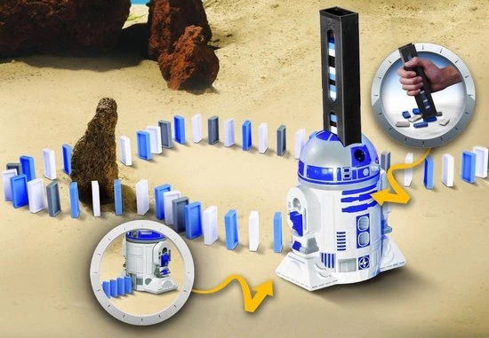 Welkom in het universum van Domino Express Star Wars! Spannende combinaties van Star Wars stunts en vallende domino?s, met highlights uit de verschillende films! Ruimteschepen worden gelanceerd, Darth Vader en Luke Skywalker maaien al vechtend de domino?s omver… En natuurli jk mogen R2-D2 en C-3PO ook niet ontbreken.