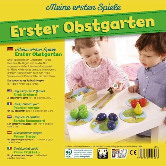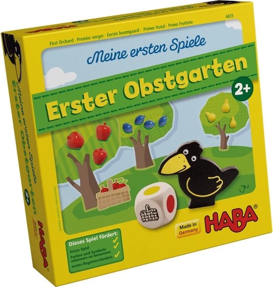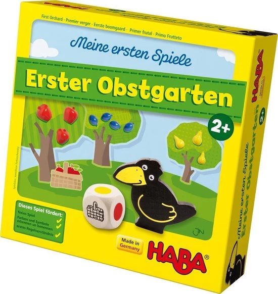 Onze spelklassieker ?Boomgaard? voor de allerkleinsten: de regels zijn aan de leeftijd aangepast en het spelmateriaal is speciaal voor kleine kinderhanden gemaakt. De mooie, handzame houten stukken nodigen tot vrij spelen uit en stimuleren hierbij de motorische vaardigheden.