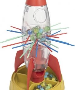 A nerve racking game of skill and tension! Don’t drop the marbles!.How to play:.Step 1 – Create a lattice of sticks and place the marbles on top.Step 2 – Each player takes turns in removing a stick from the rocket avoiding dropping any marbles.Step 3 – If any marbles fall to the bottom of the chute – the player must remove them and keep until the end of the game.Step 4 – The player with the least amount of marbles at the end of the game is the winner! 2 – 4 player game. Suitable for ages 3 years and above.