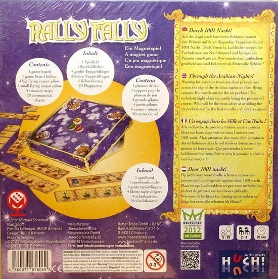 Hunting for precious treasures, four princes race across the sky of the Arabian nights on their flying carpets. But watch out for the air pockets! The turbulent night skies can easily bring the princes off course. Who will be the most adept at avoiding the air pockets and be the first to collect all the treasures?