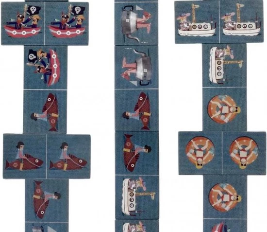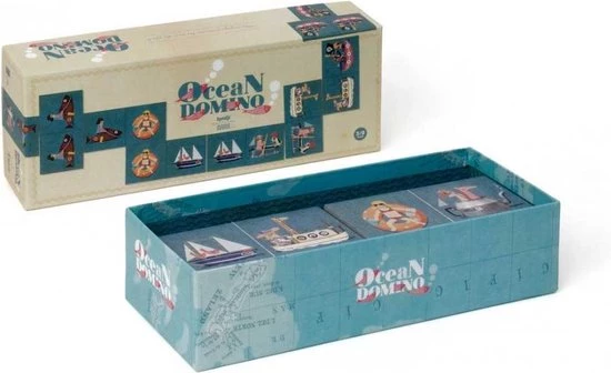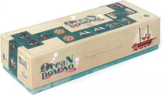 Domino Ocean is een vrolijke versie van het klassieke Domino-spel, en helemaal aangepast voor onze jongste familieleden. Het spel bestaat uit 28 prachtig ge?llustreerde stuks, die de kleine matrozen zeker zullen aanspreken. Op de Londji oceaan jagen de piraten op schatten, varen de kinderen op kleurige vissen, en zijn de boten gemaakt van sardienenblikjes. Jij wint het spel als jij als eerste al je stukken kan leggen!