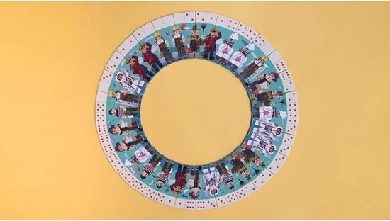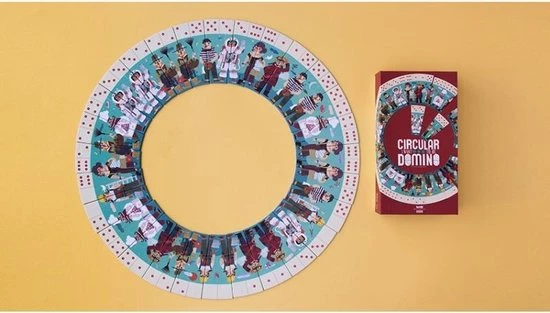 | Verpakkingsinhoud | 28, delen, van, 6, bij, 13, cm, vormen, de, kern, van, het, dominospel, dat, wanneer, het, volledig, gelegd, is, een, diameter, van, 56, cm, heeft! |