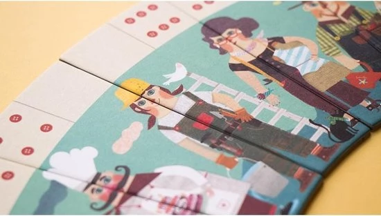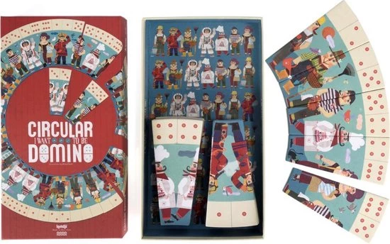 - De onderdelen van deze domino zijn zoals steeds gemaakt uit gerecycleerd karton en bedrukt met bio-inkt. We zijn niks anders gewoon bij onze vrienden van Londji (uit Barcelona)