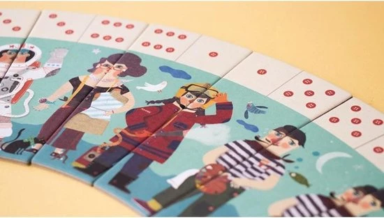 - Londji bedacht een leuke variant op het klassiek dominospel. Je moet gewoon aanleggen waar de ogen van de dobbelsteen bij elkaar passen. Er is dus een extra tekening die zorgt dat je zeker bent dat je correct aanlegt.