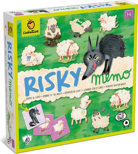 Ludattica Memory: RISKY MEMO PAS OP VOOR DE WOLF 22,5×22,5x4cm, met 40 kaartjes en instructies, 3+
