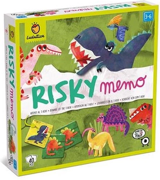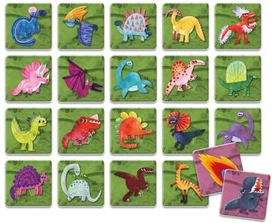 Test je geheugen met het memoryspel: Pas op voor de T-Rex van Ludattica. Dit spel is geschikt voor kinderen vanaf 3 jaar en je hebt 1 of 2 personen nodig om het te spelen. Het is een denkspel en wordt gespeeld met als doel 2 van hetzelfde plaatje te verzamelen. Dit leuke spel met dinosaurusthema heeft 40 kaarten in totaal. Je moet extra voorzichtig zijn voor de Tyrannosaurus Rex. De kaarten zijn heel kleurrijk en komen in de vorm van een vierkant.