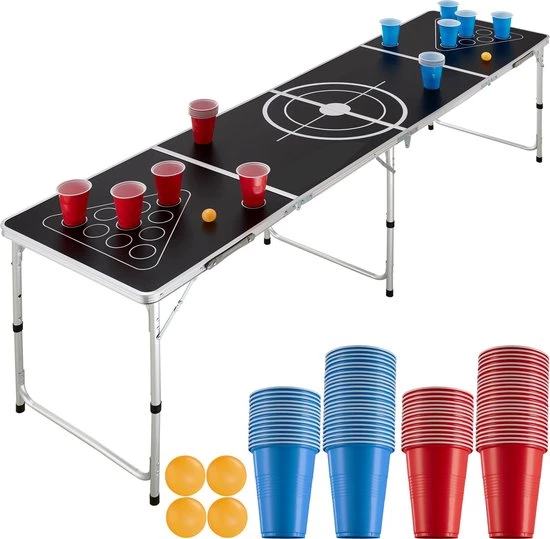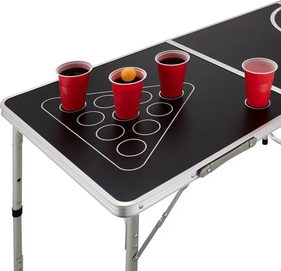 Deze beerpong tafel heeft alle middelen die je nodig hebt om het spelletje te kunnen spelen. Het oppervlak is makkelijk om schoon te maken. Je hoeft je dan ook geen zorgen te maken wanneer er wordt geknoeid met bier en andere soorten drank. Daarnaast is het verstelbaar in hoogte, en gemakkelijk opvouwbaar zodat je het altijd kunt opbergen wanneer het niet wordt gebruikt!
