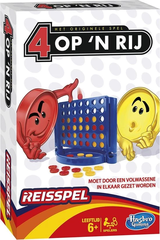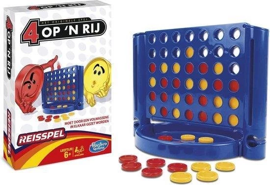Met het vier op ??n rij reisspel van Hasbro heb jij urenlang speelplezier. Zorg ervoor dat de rode of de gele rondjes vier op rij liggen en voordat je het weet heb je gewonnen! Met deze reis variant versla jij jouw tegenstander ook onderweg.
