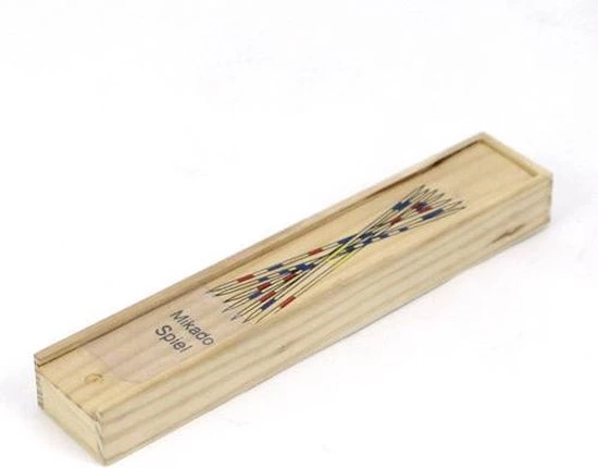 Bij Mikado pak je om de beurt een stokje van de stapel, waarbij je er voor moet zorgen dat de andere stokjes niet bewegen. Heb jij een vaste hand?De stokjes in dit Mikado spel zijn maar liefst 25cm en voorzien van gekleurde streepjes, waarmee je extra punten binnen kunt halen.