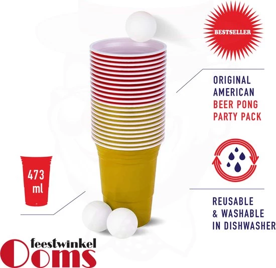 | Verpakkingsinhoud | 25, bekers, 3, ping, pong, balletjes |