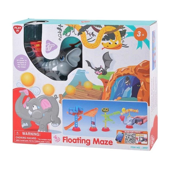 Dit zwevende doolhof van Playgo is gemakkelijk in elkaar te zetten en erg leuk om mee te spelen. Het is een perfect cadeau voor uw kind! De bedoeling van het spel is een zwevende bal door de 4 obstakels te bewegen door middel van lucht die de olifant uit zijn slurf blaast. Dit spel is niet alleen leuk, maar stimuleert ook op een speelse manier de hand-oog co?rdinatie. Inclusief 2 AA-batterijen.