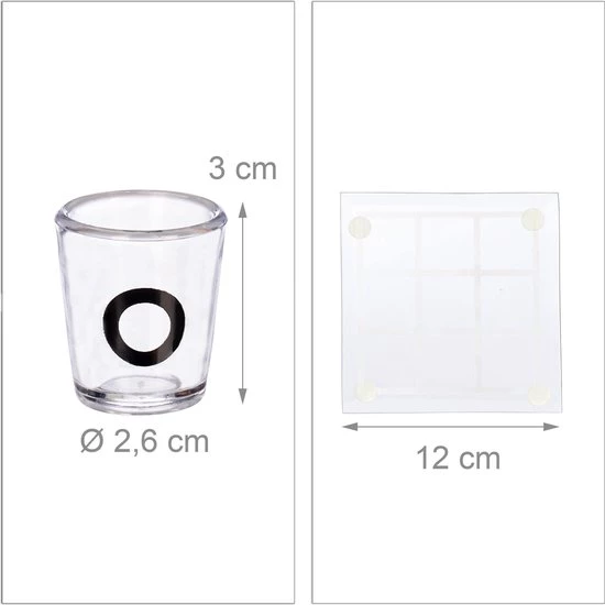 Met dit grappige drinkspel zorg je voor een geweldige stemming op het volgende feestje. Gespeeld wordt het met zijn twee?n. Hier kan je zelf bepalen, wanneer gedronken moet worden. Voor elke beurt, enkel de verliezer of slechts de winnaar mag drinken. De kleine shotglaasjes zijn ideaal voor verschillende likeuren en drankjes. Na het feest kunnen de glaasjes in de vaatwasmachine geplaatst worden.