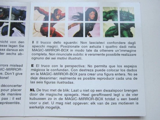 6 motieven, 4 kubussen, 3 moeilijkheidsgraden en heel slim zijn; de motieven van de magic-mirror ontstaan door spiegeling van de beelden in de magic-mirror-kubussen.