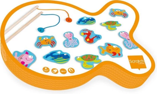Er zwemmen een heleboel grappige dieren in de zee bij Scratch Spel Visspel Grappige Vissen. Probeer ze allemaal te vangen, want wie de meeste diertjes kan bovenhalen is de winnaar! Dit is bovendien een meegroeispel, want ervaren vissertjes kunnen de punten van de gevangen zeedieren optellen en zo de winnaar bepalen. Gebruik deze mooie, stevige handgemaakte doos om uit te vissen.