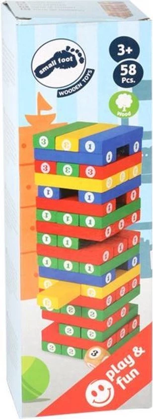 Beleef veel stapelplezier met dit spannende dobbelspel! Zoals bij de “wiebeltoren” wordt eerst de toren gebouwd en dan moeten de afzonderlijke speelstaafjes uit de toren worden getrokken. Pas wel goed op, want de toren mag niet instorten! Bij dit spel moet met een cijferdobbelsteen (1 – 3) worden vastgelegd, welke staaf (1 – 3) getrokken moet worden!