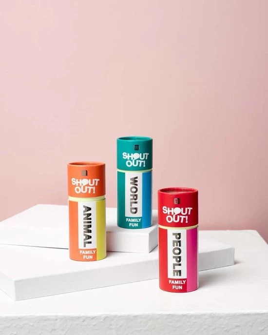 80 dubbelzijdige stokjes per spel. (3 spellen Animals/ People/ World
