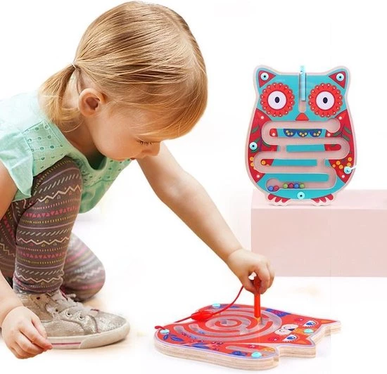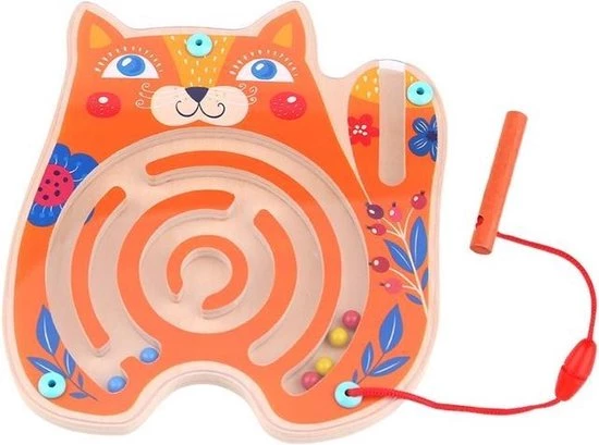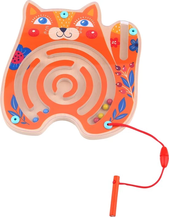 Deze superleuke doolhofkat zorgt gegarandeerd voor urenlang spelplezier! Met het magnetische stokje kan jouw kindje de knikkers verplaatsen en sorteren. Zo leert hij spelenderwijs kleuren herkennen en ontwikkelt zijn fijne motoriek. De knikkers bevinden zich achter stevig, transparant plexiglas.