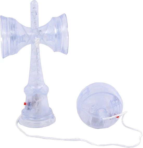 De Kendama van Toys Amsterdam is uniek door zijn ledverlichting! De kendama is semi-transparant waardoor het licht goed naar voren komt en een speels effect heeft. Kendama is een eeuwenoud Japans behendigheidsspel waarbij de bal gevangen moet worden op de hamer. De bal is met een touwtje verbonden aan het handvat.