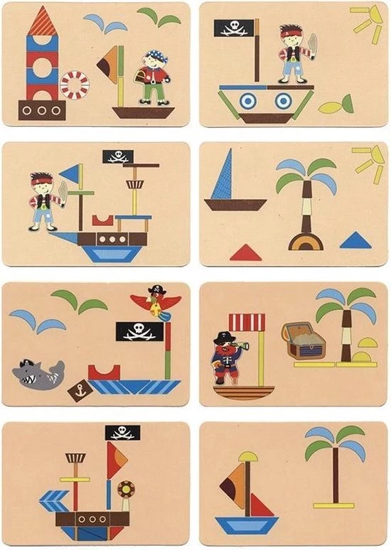 7 papieren karakters (piraten, haai, papegaai, schat, eiland)