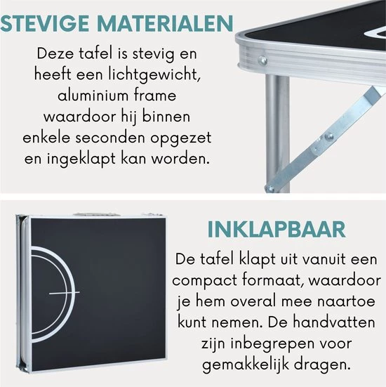 De verstelbare hoogte voldoet aan je specifieke wensen. Hij klapt uit vanuit een compact formaat, waardoor je hem overal mee naartoe kunt nemen. De handvatten zijn inbegrepen voor gemakkelijk dragen.