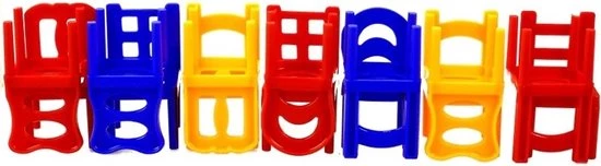 Plaats kleurrijke stoelen op elkaar en maak de grootste toren die je kunt