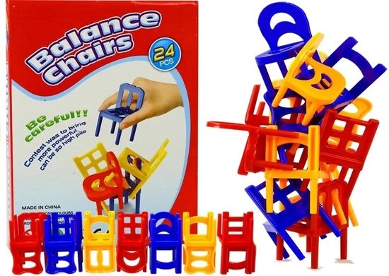 Elke speler plaatst een stoel op de volgende. Maar vergeet niet dat de toren niet kan vallen